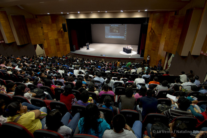 Intanto stiamo presentando la nuova associazione in incontri pubblici e interviste televisive. L’evento clou si è svolto stamattina nell’auditorium dell’Universidad de Ciencias y Artes de Chiapas, a Tuxtla Gutiérrez: con video, fotografie e racconti Tullio Bernabei ha condotto il pubblico in un viaggio di oltre vent’anni di esplorazioni in questi territori, dalla nascita dell’associazione La Venta fino ai giorni nostri. Oltre al rettore, Roberto Domínguez Castellanos, hanno assistito alla presentazione alcuni deputati dello stato del Chiapas, professori e studenti dell’ateneo.
