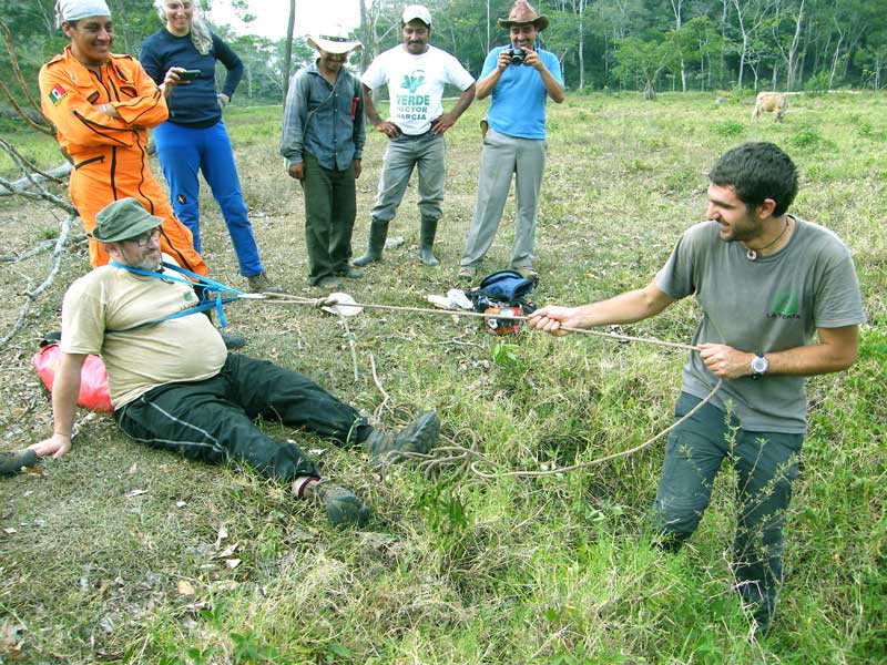 La mancanza di ancoraggi? Basta avere l'uomo chiodo!!! (Foto M. Cristiani)Partecipano a questa spedizione: Alicia Davila Garcia, Andrea Pasqualini, Carla Corongiu, Elena Volpini, Federico Faggion, Francesco Pandolfo, Francesco Sauro, Giorgio Annichini, Kaleb Zarate Galvez, Leonardo Colavita, Marta Cristiani, Massimo Liverani, Monica Ponce, Pepe Pez, Pierpaolo Porcu, Salvaore Cabras, Sandro Sedran, Silvia Arrica, Simona Tuzzato e Vittorio Crobu.