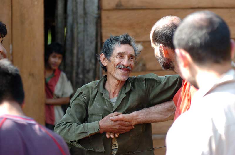 La quarta lezione, la più bella, è venuta dalla gente delle colonie. Siamo andati a chiedere il permesso di passare per le loro terre per andare in selva. Ci hanno gentilmente chiesto di ripassare dopo le 5 del pomeriggio. E quando siamo arrivati, con il suono di un corno hanno chiamato a raduno la comunità. Messi al centro della sala comunitaria ci hanno chiesto di spiegare cosa volevamo e, grazie all'aiuto dei libri (donati come sempre alla scuola del villaggio quando andiamo in nuove colonie) ad una parlantina che viene fuori in maniera incredibile in quei momenti e alla ormai ventennale capacità di tenere rapporti corretti con le popolazioni, hanno votato per darci i permessi. E addirittura per ospitarci nella scuola per una notte.