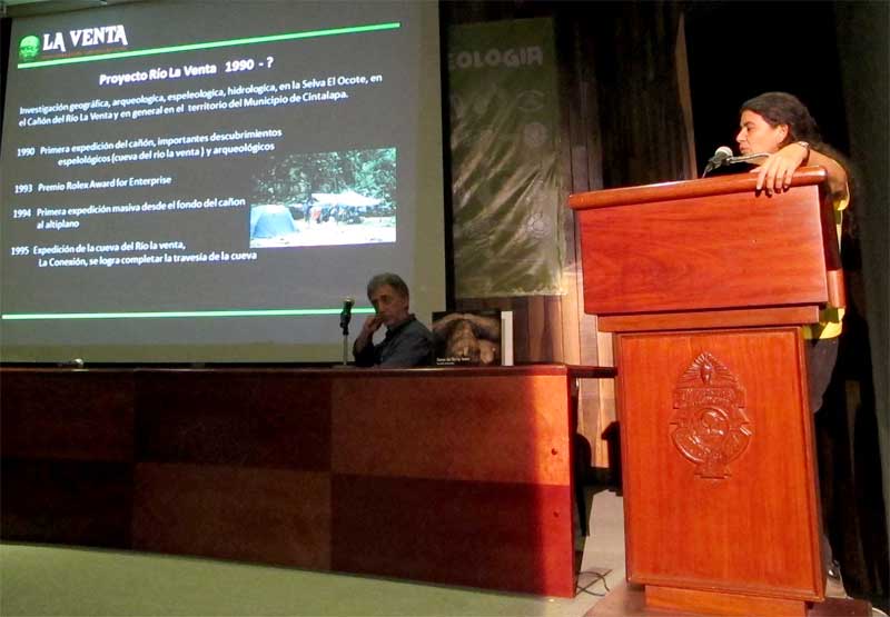 La presentazione del libroIn this busy schedule, La Venta brings a contribution. The projection of a documentary on climatic change seen during the exploration of the glaciers in Patagonia, the historic presentation of the activities of the association in Mexico starting from 1991, when the men who would become later the founders of La Venta began a long journey of discovery, exploration and popularization and finally the presentation of the book “Cueva del Rio La Vebnta- an Underground Dream” with the related project of management of the access to the cavity (see www.cuevariolaventa.info).