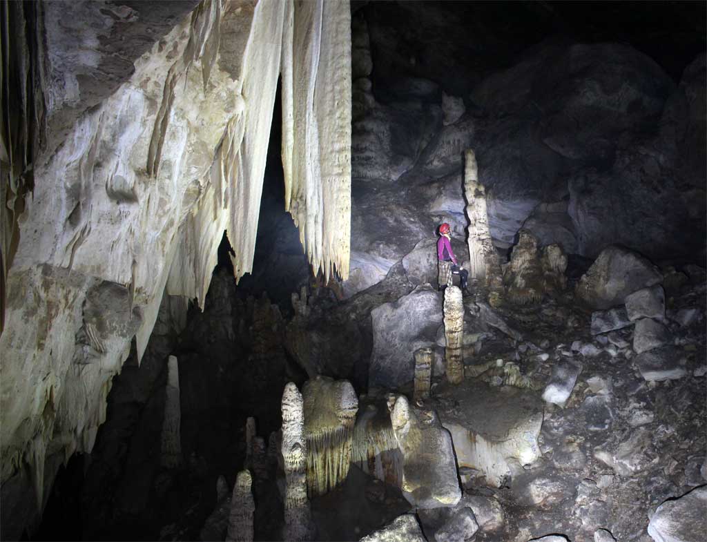 Ma non siamo venuti a fare i turisti. Anche qui una grotta ci aspettava. Ed anche qui abbiamo trovato vecchi spit piantati tanti anni fa. Nel 1987 per la precisione dal Circolo Speleologico Romano nella Gruta di Rancho Nuevo. Una grotta profonda 550 metri e con quasi 10 chilometri di sviluppo tra concrezioni incredibili. Ci siamo rientrati dopo tanti anni che non vedeva più la luce di esploratori per rivedere qualche finestra alta e cercare di capire come si possa fare ad attivare il sifone che la tiene chiusa quasi costantemente ed anche per capire meglio dove vanno le acque che vi entrano e che potrebbero essere utili ad approvvigionare il vicino villaggio.