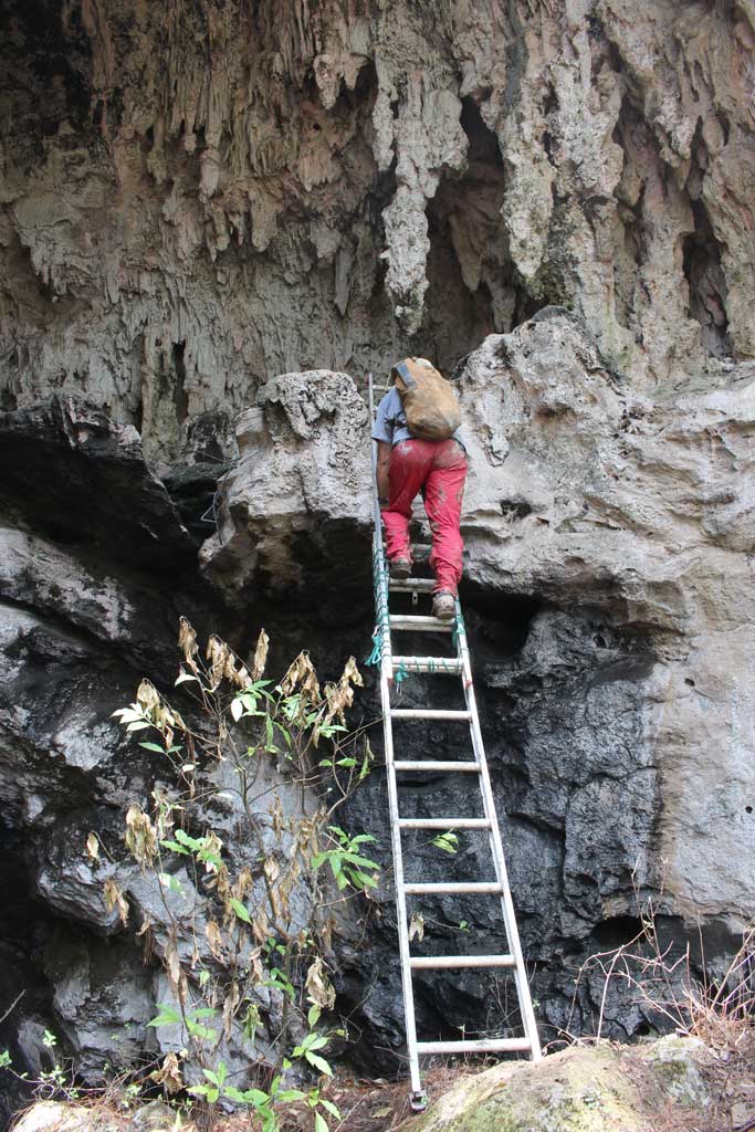 Nel frattempo grazie ad una risalita alquanto fuori norma è stato esplorato un nuovo ingresso di questa grotta. Le due traballanti scale giuntate che poggiavano su sassi instabili alla base e assicurata con una corda di cui ormai rimanevano solo alcuni trefoli saranno da aggiungere al prossimo libro di tecniche di grotta...