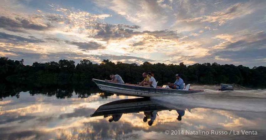 The boat they are using is still proceeding and they are at about 280 km from the Tepui. But the the river bed begins to be lower and often the hull rubs. So very soon they will move on the six lances they towed to continue and reach the closest point to the attack of the climb where to camp and meet the porters and guides.