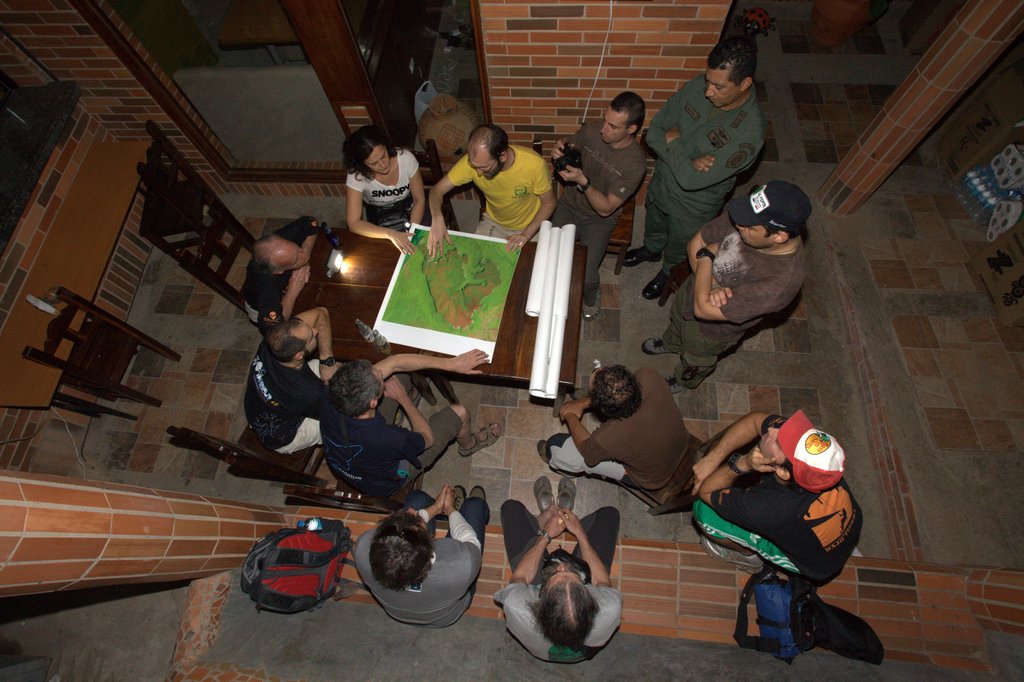 The team, led by Paduan geologist Francesco Sauro and by the caver-mountaineer from Treviso Antonio De Vivo, consists of cavers, geologists, cameramen and photographers, from various regions of Italy, with cavers from Venezuelan Teraphosa Exploing Team of Puerto Ordaz.