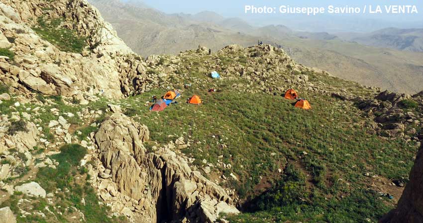 Montado el campamento por la noche y descansado unas pocas horas comenzaron, la mañana siguiente para ir hacia abajo Qala Cave, un pozo profundo donde los amigos iraníes que los acogen y acompañan están llevando a cabo las exploraciones.